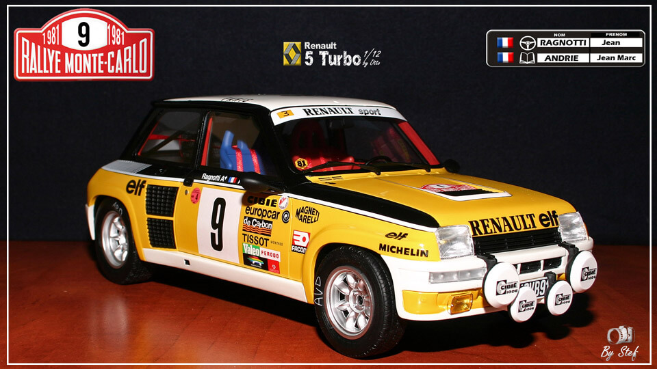 Mon modèle préféré ? Dur dur de répondre à cette question car j'ai beaucoup de modèles préférés chez OTTO car elles sont toutes superbes, mais je pense que si je devais vraiment en garder qu'une ce serait la RENAULT 5 TURBO de Jean Ragnotti au Monté Carlo 1981 au 1/12 . »